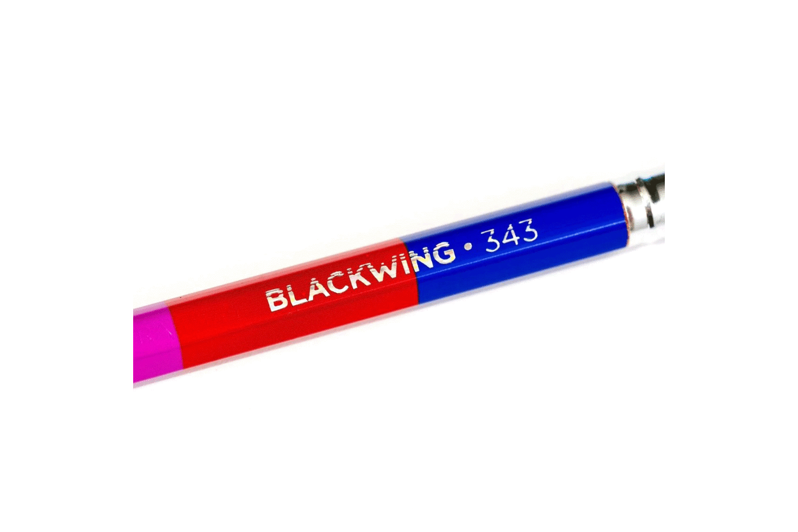 Der Blackwing 343 ist eine Hommage an das analoge Farbfernsehen. Jeder Bleistift verfügt über eine Lackierung in Form von Farbbalken, das vom NTSC(National Television Systems Committee)-Testbild inspiriert ist, und enthält eine extra feste Graphitmine. Die Volume Zahl 343 ist eine Anspielung auf die 343 Zeilen der frühen Röhrenfernseher. Der Schaft ist mit einem Blackwing Logo aus silberner Hologrammfolie im „Rauschbild-Look“ bedruckt.